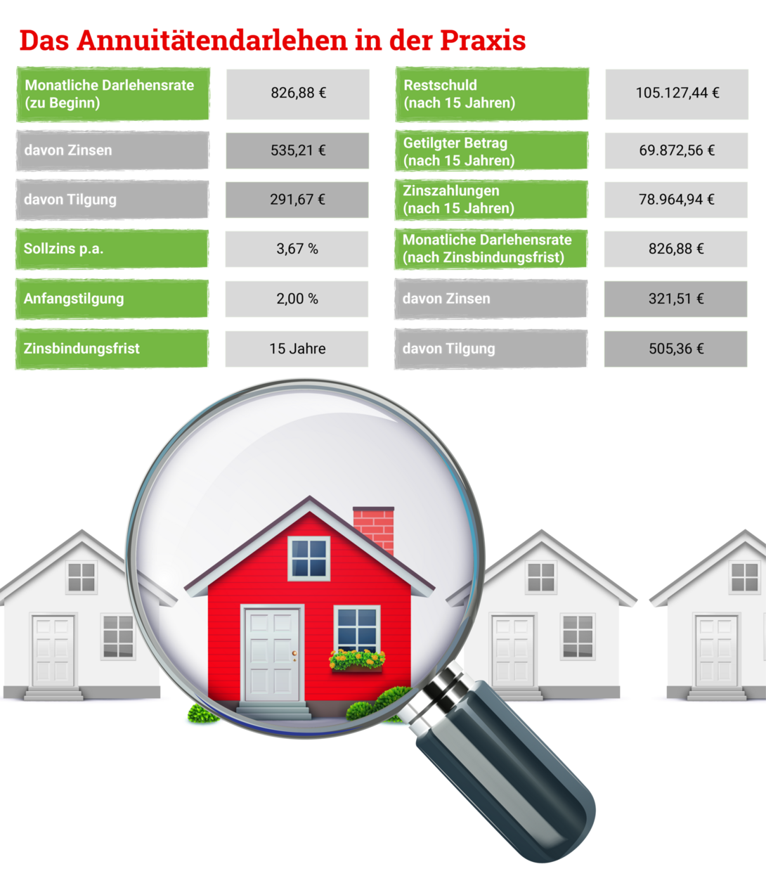 Wie ein Annuitätendarlehen in der Praxis aussehen kann, soll das folgende Beispiel veranschaulichen: